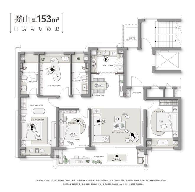153㎡四居:总价620-680万,分布于3#、5#楼,2梯2户设计,层高3米
